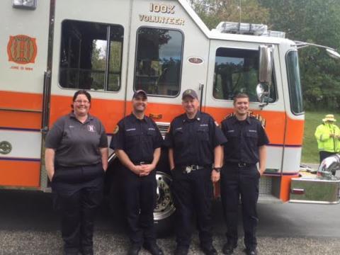 Fire Safety is key! As we focus on Fire Prevention 2015 please make sure we are all practicing with our children what they have learned in school. If you have any follow up questions or would like a tour of the fire house feel free to contacts us. Pictured from L. to R. are FF Samantha Borman, Lt. Bobby Montanaro, Capt. Jim Totonis, and FF Brian Stabner. |