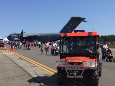 On 9/3/16 and 9/4/16 the Walden Fire Department provided apparatus and manpower to the New York Air National Guard (Stewart) for the NY Air Show. During the show the highlighted even was the USAF Thunderbirds. The Department provided the UTV and Tanker for support. |