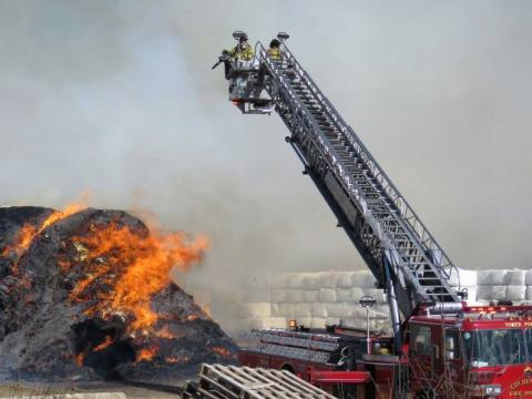 On 3/21/16 The Walden Fire Dept. was dispatched as Mutual Aid to a Hay / Brush Fire in the Campbell Hall Fire District. Within minutes Asst. Chief Sager and Asst. Chief Totonis responded to the call along with Tanker 239, Brush Truck 242, and UTV 243. Chief Williams and the rest of the apparatus stayed in our district to ensure proper coverage and to coordinate relief manpower later in the day for the initial crew. Upon arrival to the scene the men and women of the Walden Fire Dept. found hundreds of bales hay on fire with brush fires starting in the surrounding area. In fact the structures around the farm faced the danger of being engulfed in the flames. Walden Units remained on scene for over 12 hours battling the flames with wind gusts hitting more than 30 miles per hour. Along with Walden over 30 Departments between 3 counties helped in the efforts to contain the blaze. |